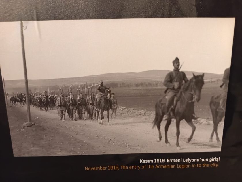 “İşğal başlayandan sonra ermənilər Antepdə türklərin yaşadıqları məhəllələri tərk edərək dinc əhaliyə qarşı kütləvi cəza tədbirlərinə yol açmağa başlayıblar”, - deyən muzey əməkdaşı məhz ermənilərin təkidi ilə fransızların Anadolunun onların nəzarətində olan ərazilərini “Kilikiya” adlandırmağa başladığını qeyd edib. “Erməni legionu”nun fotoşəkilləri, eləcə də Antepin işğalı zamanı ermənilərin istifadə etdiyi silahlar və uniformalar muzey eksponatları arasında var. Burada, həmçinin bir yerli erməninin “bütün bunlardan sonra türklərlə üz-üzə necə gələcəyik” etirafı yer alır. Tarixçi 1919-cu il noyabrın 5-də erməni tərcüməçinin müşayiəti ilə Antep məscidlərindən birinə gələn fransızların dini binadan türk bayrağını sökməsinin xalqın səbrini daşıran son damla olduğunu xatırladıb.