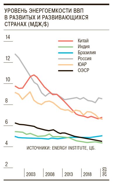 Rusiya Bankının “Çin karbon neytrallığına gedən yolda” analitik qeydindən belə nəticə çıxır ki, Çində ilkin enerji istehlakının ÜDM-ə nisbəti 2005-ci ildən bəri 40 faizdən çox azalıb və inkişaf etmiş ölkələrin göstəricilərinə yaxınlaşıb. Rusiyada ÜDM-in enerji intensivliyinin səviyyəsi hələ də nəzərəçarpacaq dərəcədə yüksəkdir.