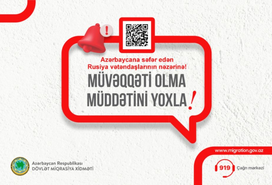 Ətraflı məlumat üçün Dövlət Miqrasiya Xidmətinin (012) 919 Çağrı Mərkəzinə, rəsmi sosial şəbəkə hesablarına (facebook, ınstagram) və ya İctimaiyyətlə Əlaqələr İdarəsinə [email protected] e-maili vasitəsilə müraciət edə bilərsiniz.