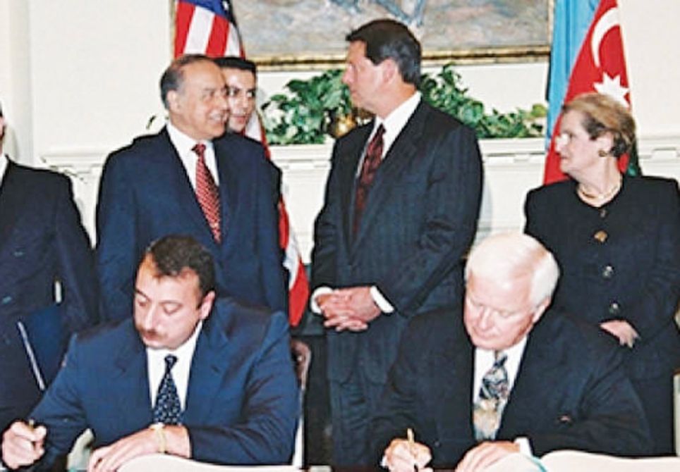 1994-cü il sentyabrın 20-də "Əsrin müqaviləsi" gerçəkləşdi. Müqavilənin imzalanmasında Azərbaycan, ABŞ, Böyük Britaniya, Rusiya, Türkiyə, Norveç, Yaponiya və Səudiyyə Ərəbistanının 13 böyük neft şirkəti - ARDNŞ, Amoco, BP, McDermott, UNOCAL, Lukoil, Statoil, Exxon, Türkiyə Petrolları, Pennzoil, ITOCHU, Ramco, Delta iştirak etmişdir. Bununla da Azərbaycanın yeni neft strategiyası və doktrinasının əsası qoyuldu.