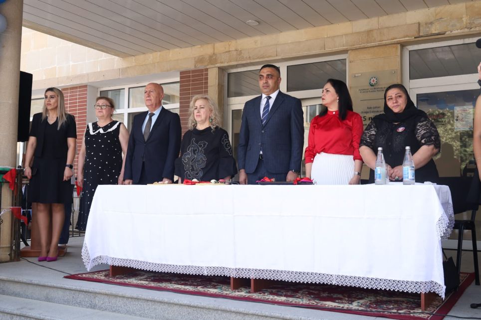 Məktəbin həyətində günün ruhunu əks etdirən xüsusi ab-hava var idi. Səhnə rəngarəng şarlarla bəzədilmiş, pəncərələrdən Azərbaycan bayrağı asılmışdı.