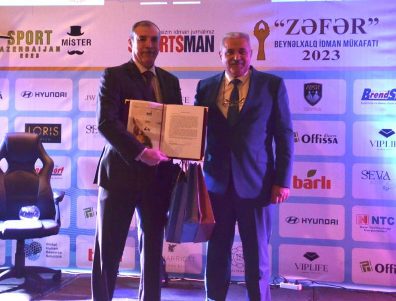 "Zəfər” 2023 Beynəlxalq İdman Mükafatının təqdimat mərasimində Milli Olimpiya Komitəsinin mətbuat katibi, "Olimpiya dünyası" qəzetinin baş redaktoru, Əməkdar jurnalist Murad Fərzəliyev "Sportsman" jurnalının 20 illik yubileyi münasibəti ilə bu nəşrin baş redaktoru Rəşad Qəmərşahoğluna MOK-un hədiyəsini təqdim edib.
