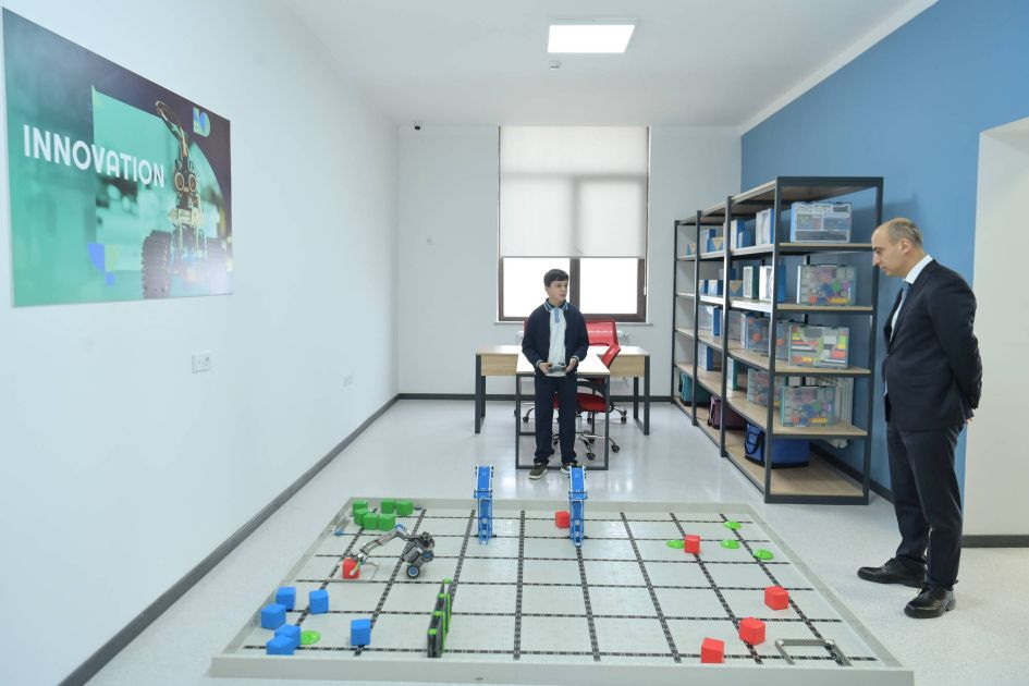 Daha sonra məktəbin STEAM mərkəzinə baxış keçirilib. Nazir şagirdlərin hazırladıqları layihələrlə tanış olub, onların innovativ ideyalarını dinləyib və bu istiqamətdə əldə etdikləri nailiyyətləri yüksək dəyərləndirib.