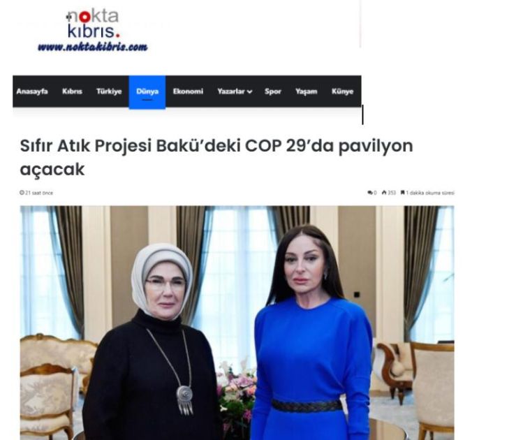 Qeyd olunur ki, digərləri ilə yanaşı, Türkiyə liderinin xanımı Əminə Ərdoğanın təşəbbüsü ilə həyata keçirilən “Sıfır Tullantı” layihəsi Azərbaycandakı qlobal tədbir çərçivəsində təqdim olunacaq.