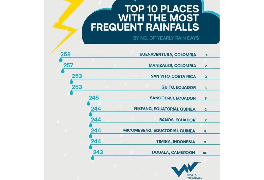 Yer kürəsində ən çox yağış yağan yerlər – şəhərlərin reytinqi