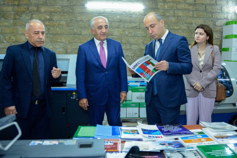 Sonra Emin Əmrullayev UNEC-in yeni qurulan Rəqəmsal Mətbəəsi ilə tanış olub. Bildirilib ki, mətbəə kitab və jurnalların çap edilməsi, cildlənməsi, eləcə də bütün növ materialların üzərində promo məhsulların hazırlanması üçün ən müasir tələblərə cavab verən, yüksək sürətli avadanlıqla təchiz edilib.