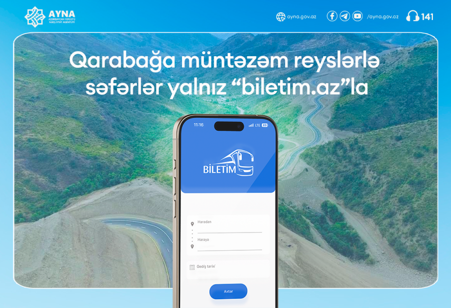 Bununla əlaqədar olaraq işğaldan azad olunmuş ərazilərə avtobusla səfər etmək istəyən vətəndaşlarımızdan 1 mart tarixindən etibarən müntəzəm reyslər üzrə biletləri “yolumuzqarabaga.az” portalı üzərindən deyil, yalnız “biletim.az” portalı üzərindən əldə etmələri xahiş olunur.