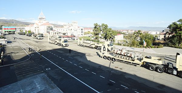 Parad heyətlərinin keçidindən sonra antiterror tədbirləri zamanı müsadirə olunan hərbi texnikaların kiçik bir qismi qoşqular üzərində Xankəndi şəhərinin mərkəzi meydanına gətirildi. Müsadirə edilmiş hərbi texnikaların və nəqliyyat vasitələrinin nömrə nişanlarından hazırlanan və üzərində "Zəfər" sözü həkk edilən lövhə nümayiş olundu.