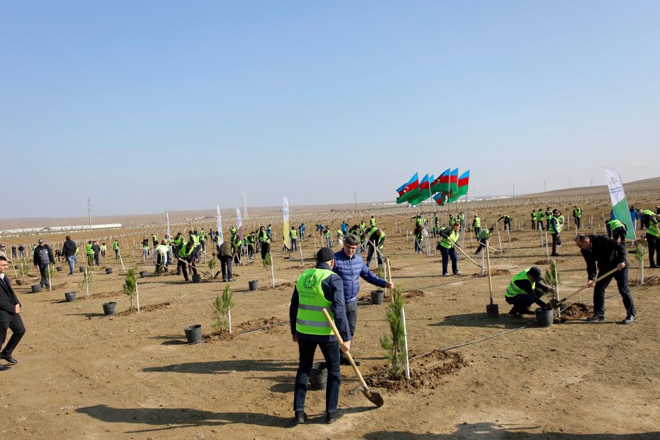 Tədbir çərçivəsində 2 hektar ərazidə 1200-dən çox eldar şamı və zeytun ağacları əkilib.