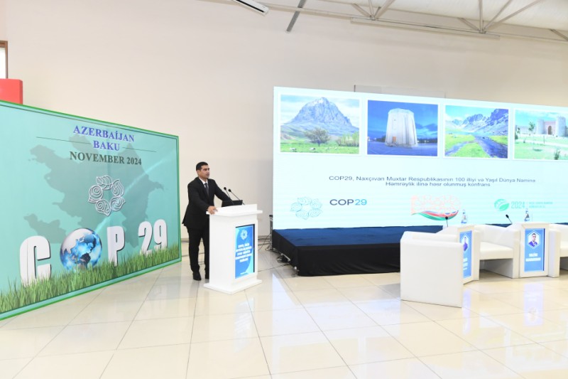 “İqlim dəyişikliyi ilə mübarizədə görülən tədbirlər və iqlim dəyişikliklərinin ətraf mühitə təsirləri, alternativ enerjidən istifadə” mövzusuna həsr edilən konfransda COP29 gündəliyindən irəli gələn məqsədlər və onların muxtar respublikada yerinə yetirilməsi ilə bağlı hesabatlar dinlənilib.